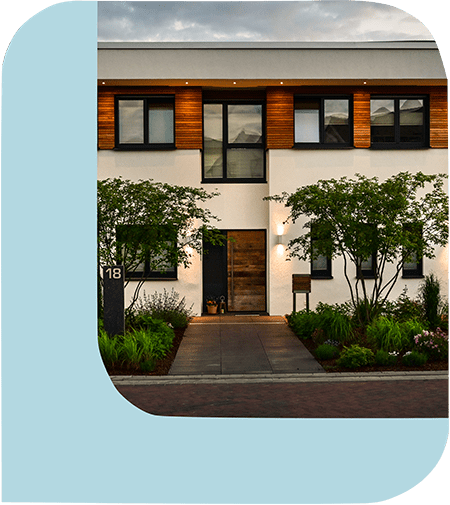 Haustürenanlage im Neubau in Lehre von der Firma Topic, Hausansicht